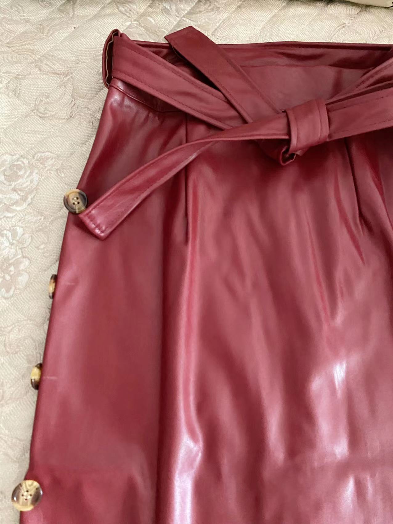 PUレザースリットスカート b810